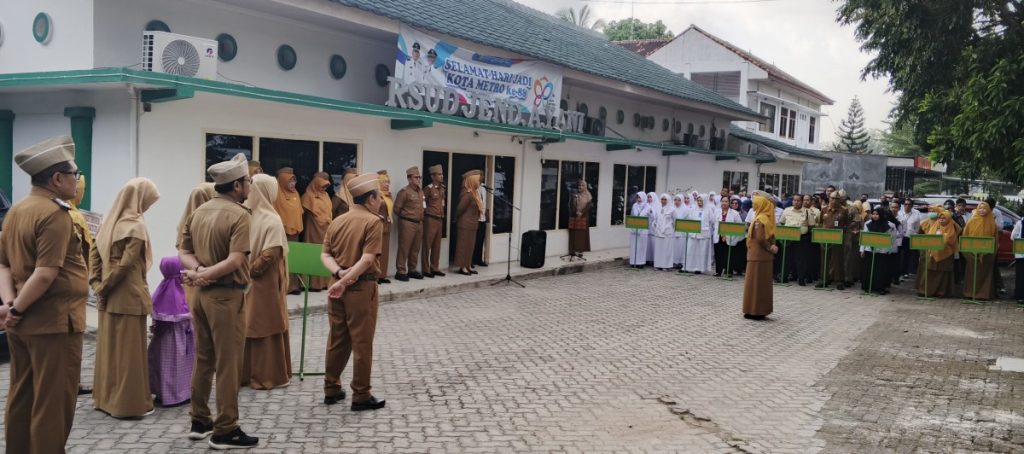 Apel mingguan pagi ini dihadiri oleh Wakil Direktur Pelayanan, Wakil Direktur Perencanaan Keuangan dan Tata Usaha, Kepala Bidang, Kepala Bagian, Ketua Tim Kerja Manajemen, Kepala Ruangan, Kepala Instalasi, Supervisor Keperawatan, Satpam dan Staff RSUD Jenderal Ahmad Yani Metro.Dalam amanatnya Kepala Bidang Keperawatan mengapresiasi seluruh peserta apel yang telah hadir pada pagi ini, yang mana merupakan salah satu bentuk disiplin pegawai RSUD Jenderal Ahmad Yani. Disampaikan juga beberapa hal diantaranya bahwa, Rekam Medis Elektronik sudah dilakukan sejak minggu yang lalu di Poli Rawat Jalan dan Rawat Inap serta Penunjang Medis. Alhamdulilah berjalan dengan baik, meskipun ada beberapa hal yang menjadi kendala, namun semua itu akan menjadi bahan untuk meningkatkan kualitas Rekam Medis Elektronik di RSUD Jenderal Ahmad Yani Metro.