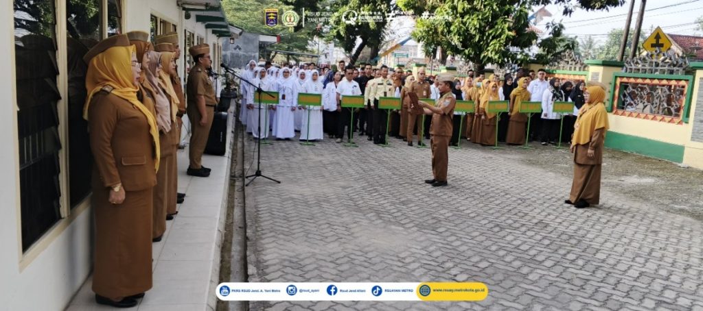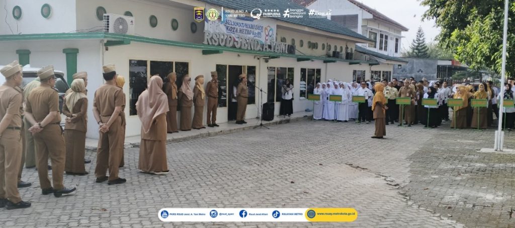 Apel mingguan pagi ini dihadiri oleh Wakil Direktur Pelayanan, Kepala Bidang, Kepala Bagian, Ketua Tim Kerja Manajemen, Kepala Ruangan, Kepala Instalasi, Supervisor, Satpam dan Staff RSUD Jenderal Ahmad Yani Metro. Dalam amanatnya Bapak Hendarto,SKM.,M.Kes, memberikan Apresiasi kepada seluruh Hospitalia RSUD Jenderal Ahmad Yani Metro, yang telah mengikuti kegiatan apel hari ini. Diingatkan kepada seluruh Hospitalia yang Berdinas pagi hari, sesuai dengan yang telah disampaikan Ibu Direktur diwajibkan mengikuti Apel. Dimohon kepada Tim Kepegawaian untuk dapat dilakukan absensi bagi Peserta Apel, dan dijadikan bahan pertimbangan penilaian bagi Pimpinan.Selanjutnya disampaikan juga bahwa hari ini, kita akan melakukan Cut Off Rekam Medis Elektronik di Rawat Jalan. Pagi ini Tim IT dan Rekam Medis sudah berada di Bagian Pendaftaran dan Nurse Station untuk memantau Proses Implementasi Rekam Medis Elektronik.
